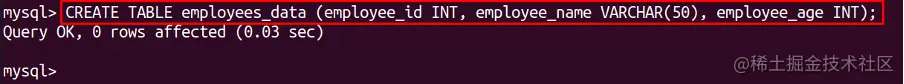 CREATE TABLE employees_data (employee_id INT, employee_name VARCHAR(50), employee_age INT);