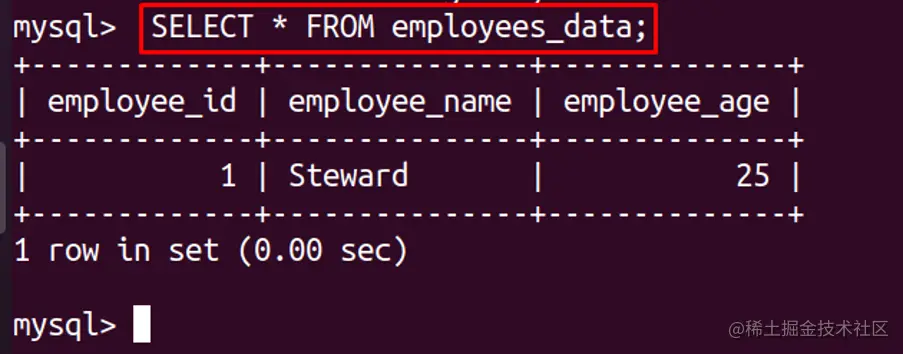 INSERT INTO student_data VALUE (1, “Steward”, 25);