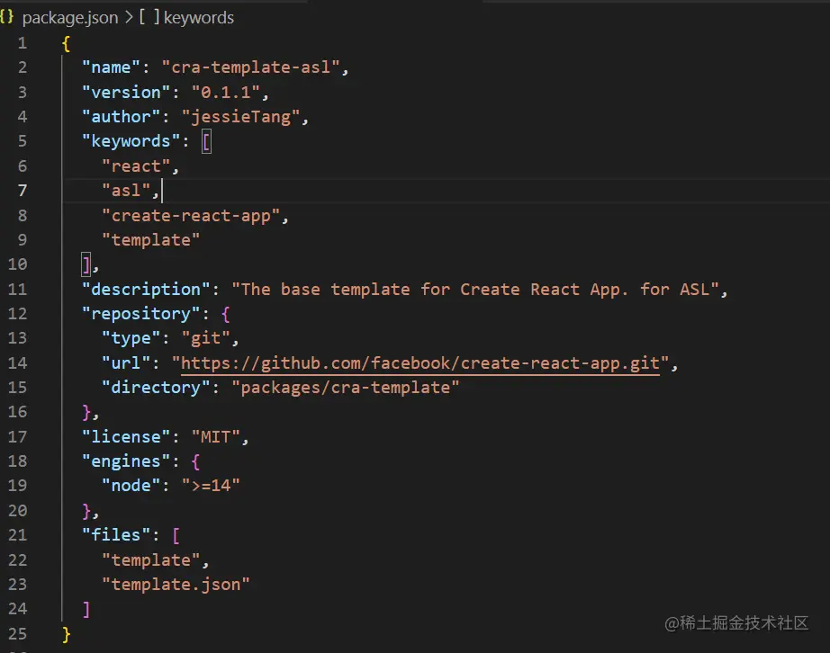 第一步:以CRA推荐的格式cra-template-[template-name],以这个格式命名新建一个项目目录,例如我这边的命名cra-template-ASL。