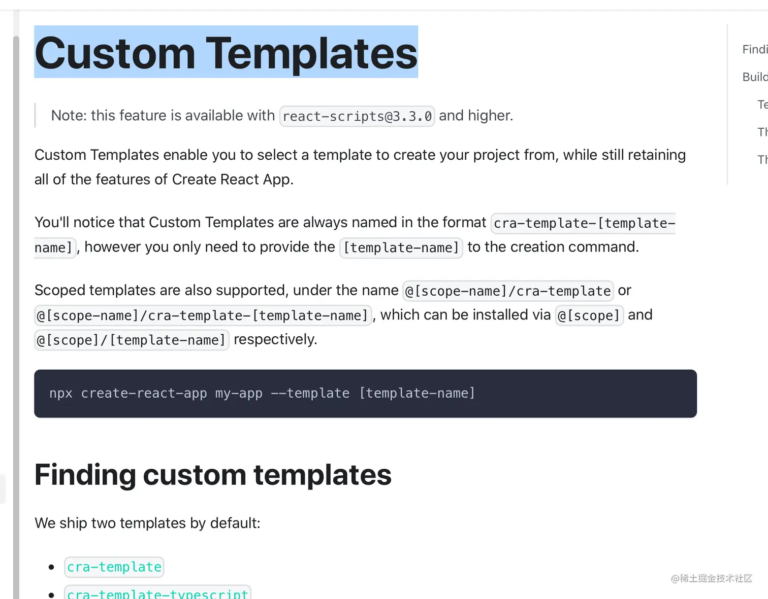 这个内容可以自定义CRA的模版,只需要执行:npx create-react-app my-app --template [template-name],模版肯定是需要自己自定义了,这需要遵守CRA的规则: