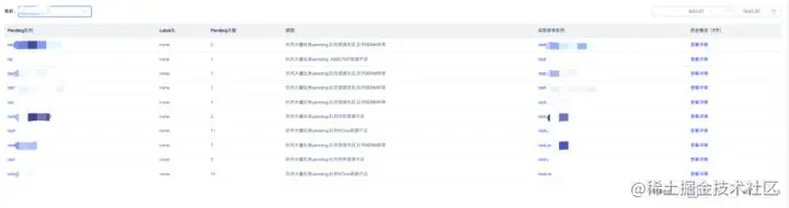 如下图例所示,EasEagle能够默认展示集群在前一天中,有哪些队列发生过pending的情况,问题实际发生的队列,以及出现过pending的原因。