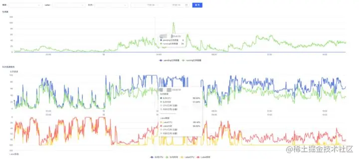 EasyEagle能够选择任意时段,提供队列内存,CPU的资源使用水位趋势,队列运行和pending的任务数量趋势,如下图例所示: