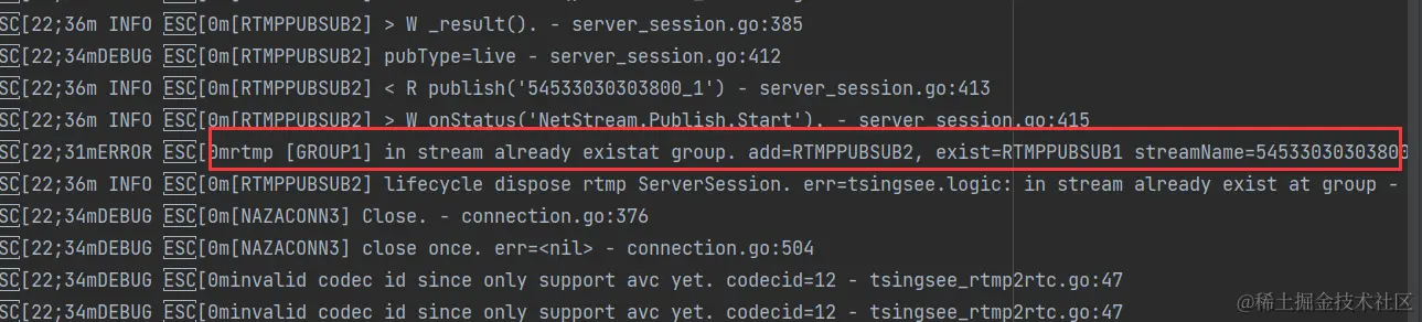1)查看内核日志,发现存在重复推流的现象: