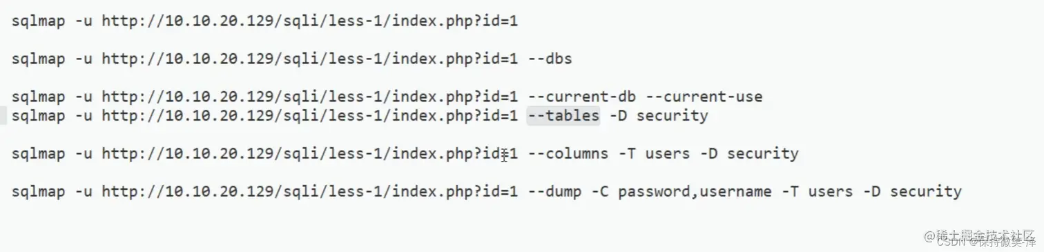 下面是几个比较常用的sqlmap注入命令