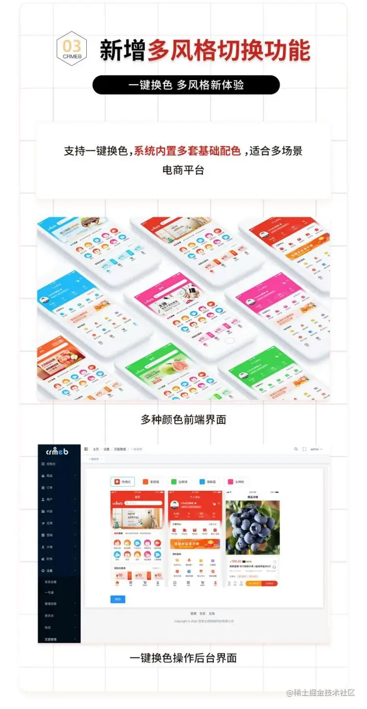 为满足众多 Java 大军伙伴的需求,CRMEBJAVA 团队经过将近一年的艰苦研发以及持续不断的完善迭代。在保留了 PHP 版的优秀基因外,并进行了创新,紧跟时代,各项功能均已具备,拼团、砍价、秒杀、会员、分销、优惠券、积分抵扣、用户等级、门店自提、视频号直播带货等更多常见功能。