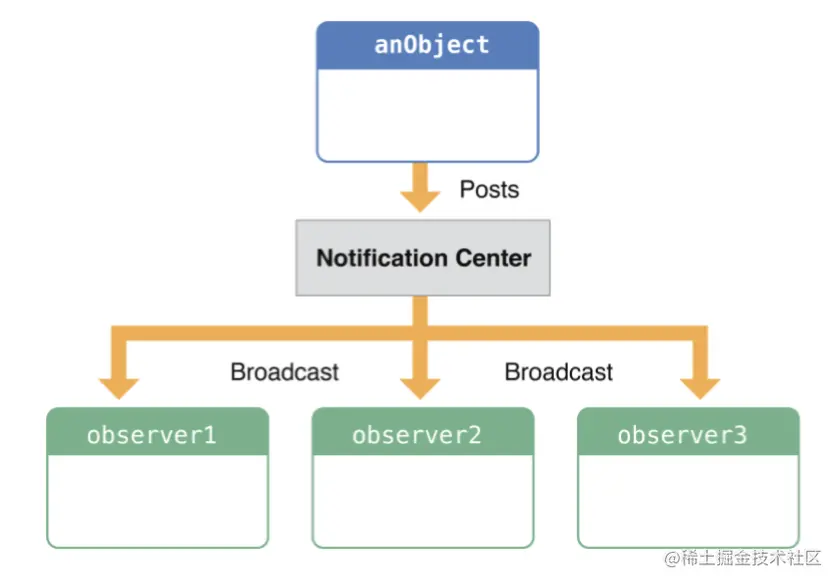 3、 Model在处理完数据之后,如果有需要,会通过Notification或者KVO的方式告知Controller,事件已经处理完,Controller再经过判断和处理之后,考虑下一步要怎么办。这里的无线天线很有意思,Model只负责发送通知,具体谁接收这个通知并处理它,Model并不关心,这一点非常重要,是理解Notification模式的关键。