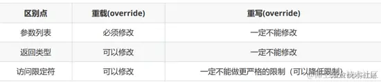 修饰符返回值类型方法名(参数列表)需要完全一致(注意:JDK7以后,被重写的方法返回值类型可以不同,但是必须是 具有父子关系的 ,这称之为 协变 ) -