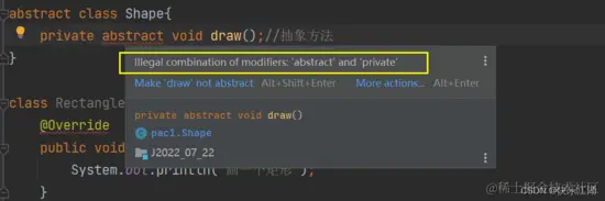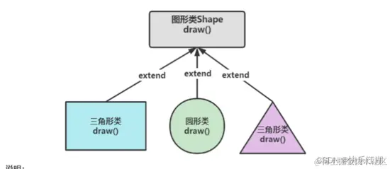 Shape类中也存在draw方法,但是Shape它并代表某个具体图形,是没有办法来实现的