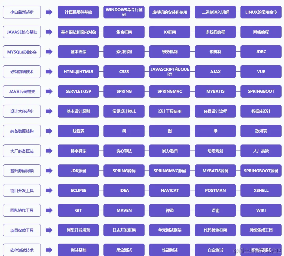 对于后端学习来说,这里包括你从接触互联网的基础内容开始,了解一部分如HTML、CSS的前端语言,之后学习操作系统的相关知识,并逐步转为后端语言学习