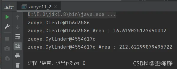 (5)编写一个测试程序,创建一个Shape类型的数组,数组有两个元素,分别是一个Circle对象(半径2.3)和一个Cylinder对象(半径3.6,高度5.8),通过循环语句遍历数组每个元素并输出数组元素的面积,该循环语句要能体现面向对象的多态特性。