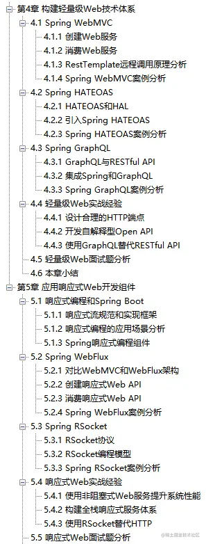 本部分讨论针对Web应用程序开发所提供的最佳实践,包括使用SpringHATEOAS开发自解释Web API,使用Spring GraphQL开发查询式Web API,针对传统Spring MVC的异步编程模型,以及新型的基于响应式流的WebFlux组件。同时,我们还将讨论如何使用目前非常流行的、Spring 5默认内置的RSocket协议来提高网络通信的性能。