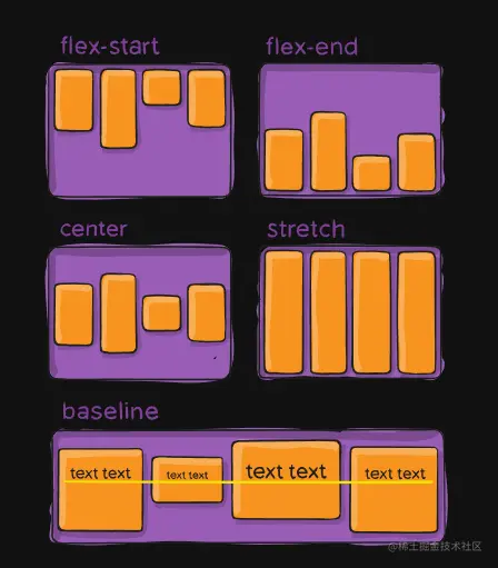 侧轴的对齐:align-items,stretch是默认值
