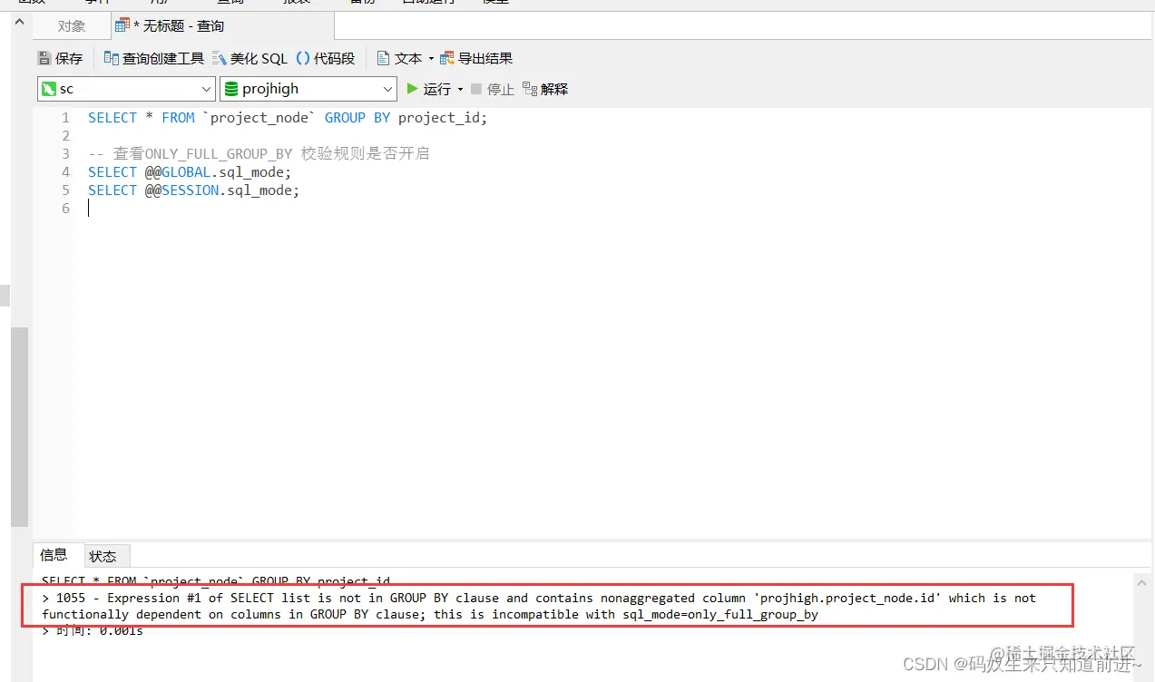 可以从查询的数据来看是存在ONLY_FULL_GROUP_BY这个配置的