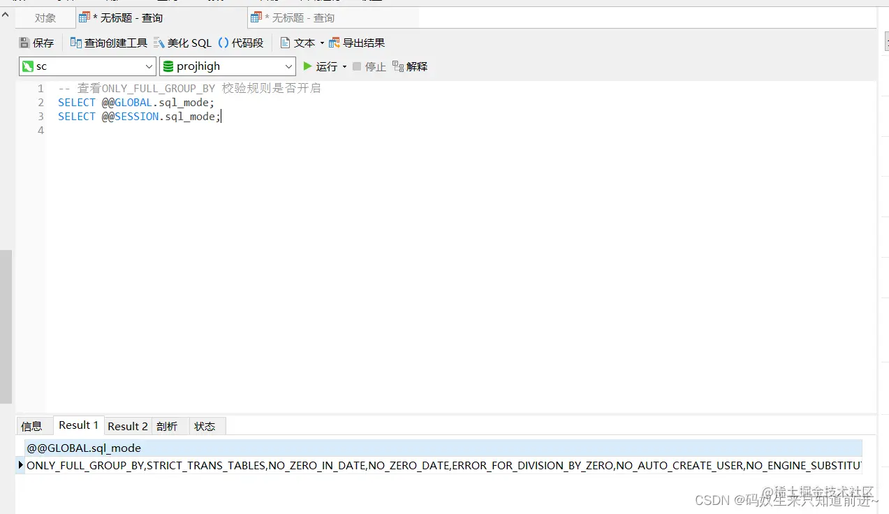 4、查看ONLY_FULL_GROUP_BY 校验规则是否开启