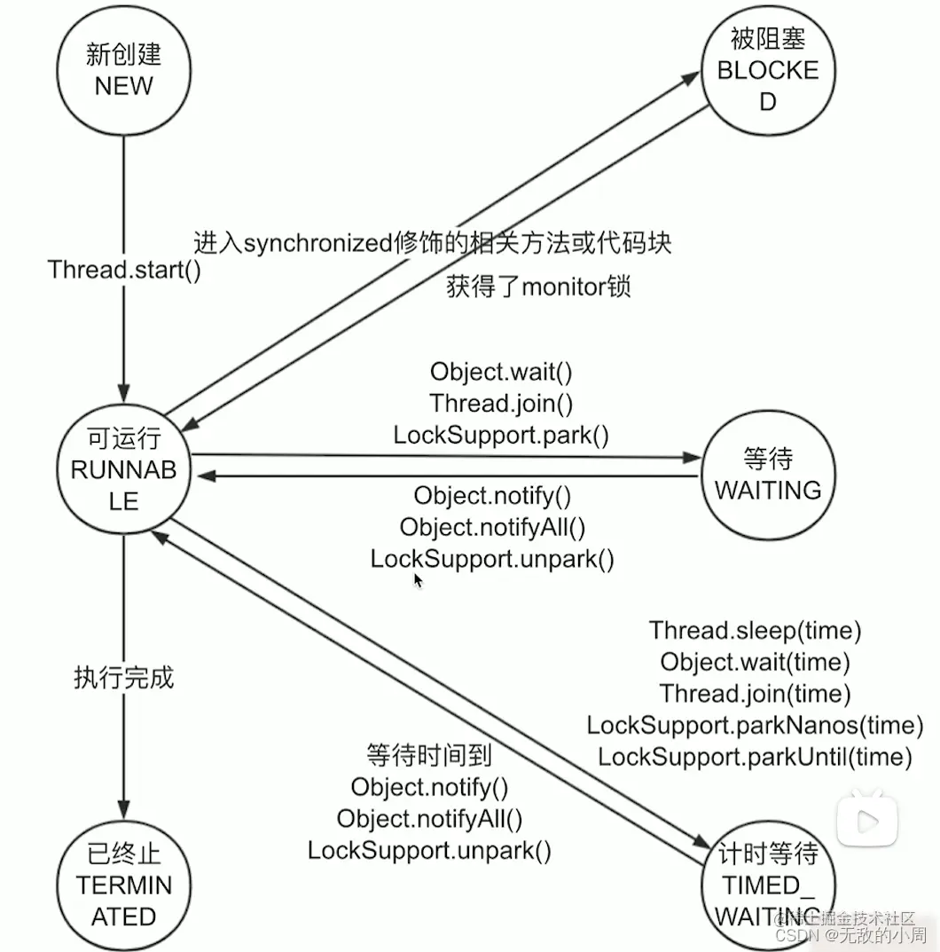 一般习惯而言,把Blocked(被阻塞),Watting(等待),Timed_Watting(计时等待)都称为阻塞状态