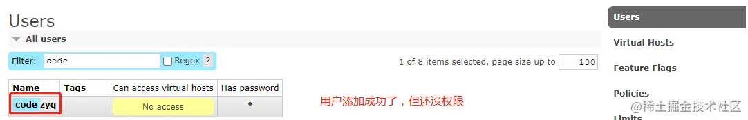 创建好的虚拟主机点击名字进详情,还能配置对应的权限。
