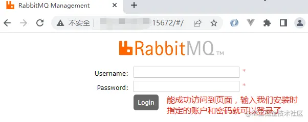 通过docker ps 命令查看容器运行正常之后,就可以通过浏览器访问RabbitMQ的管理页面,如下: