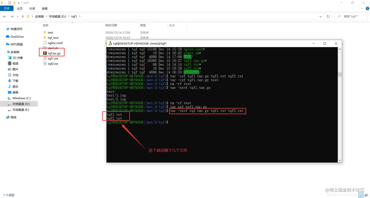 tar -czvf tqf1.tar.gz tqf1.txt tqf2.txt