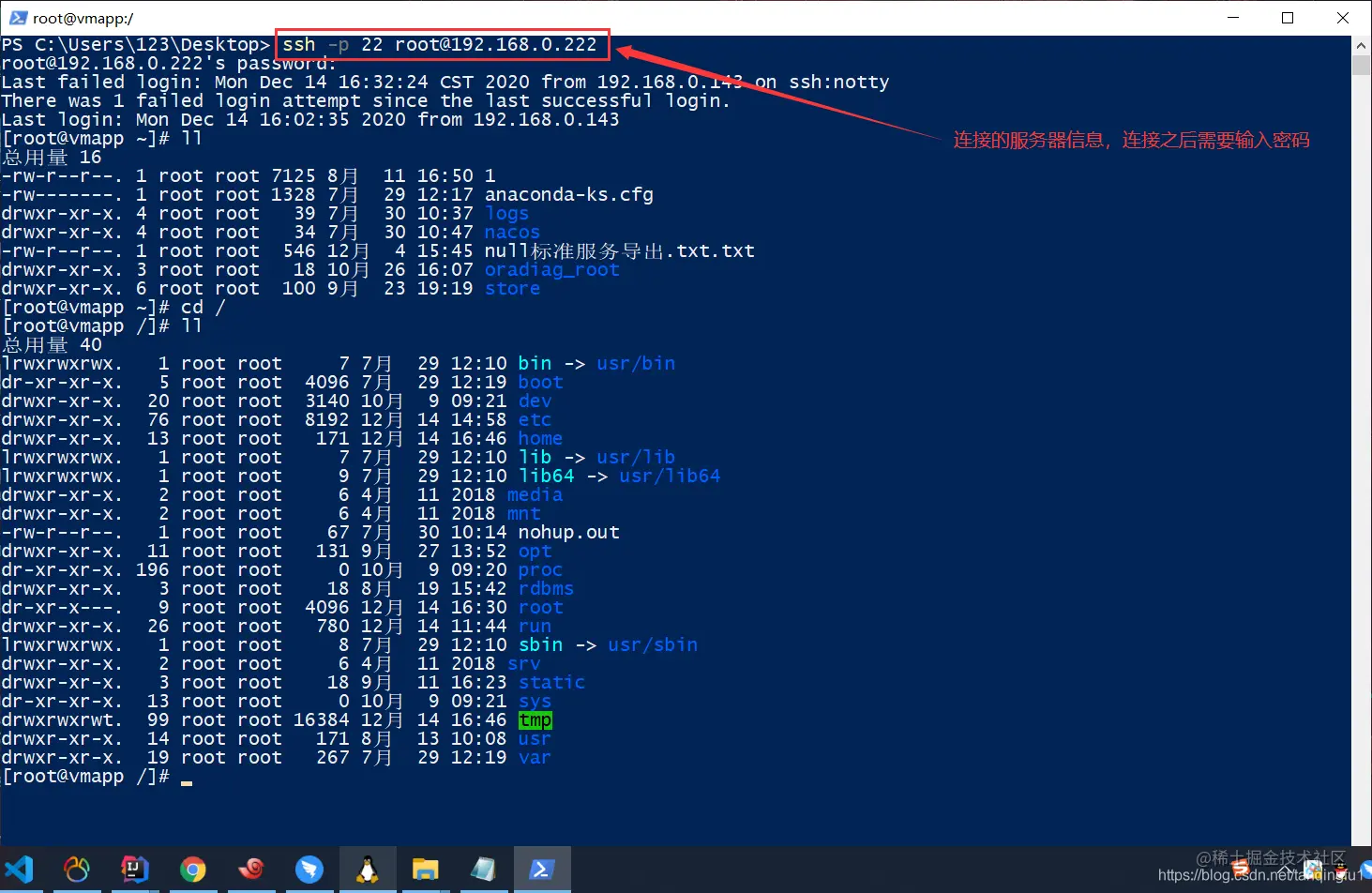 ssh -p 端口 用户名@ip地址 端口默认是22,下面给一个实际的示例
