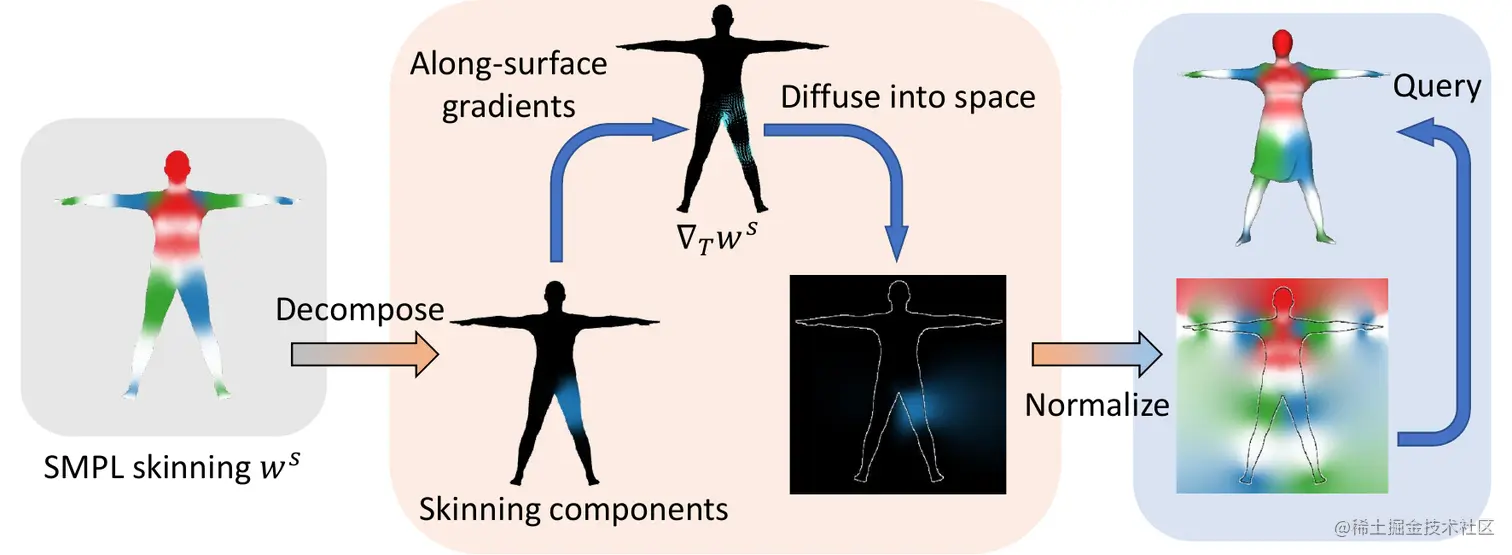 论文摘要:我们提出了FITE,一个先隐后显的框架,用于为服装中的人类虚拟形象建模。我们的框架首先学习代表粗略服装拓扑结构的隐性表面模板,然后利用模板来指导点集的生成,这些点集进一步捕捉与姿势相关的服装变形,如皱纹。我们的管道结合了隐式和显式表征的优点,即处理不同的拓扑结构的能力和有效捕捉精细细节的能力。我们还提出了扩散蒙皮,以促进模板训练,特别是对于宽松的衣服,以及基于投影的姿势编码,以从没有预定义UV图或连接的网格模板中提取姿势信息。我们的代码可在 github.com/jsnln/fite 获取。