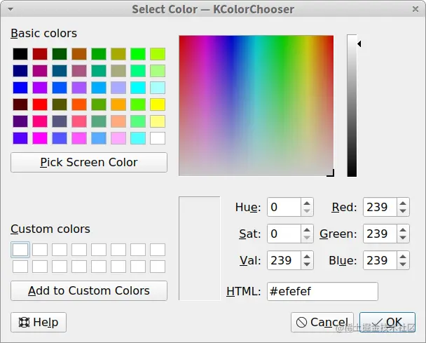 KColorChooser在许多Linux发行版的软件库中都有,所以你可以从软件包管理器中安装它。