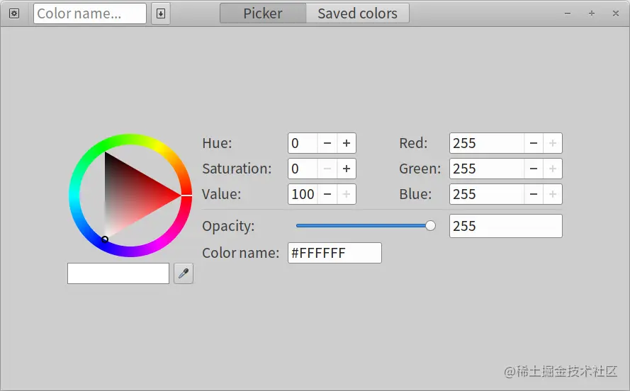 Gcolor3是另一个用GTK+和C编程语言开发的颜色选择器工具。它是官方GNOME应用程序套件的一部分。它的特点是:现代而简约的GTK+界面,内置滴管工具,能够保存颜色以方便使用,能够搜索保存的颜色,一键复制按钮可以快速复制剪贴板上的颜色代码,以及调整不透明度、色调和饱和度的选项。