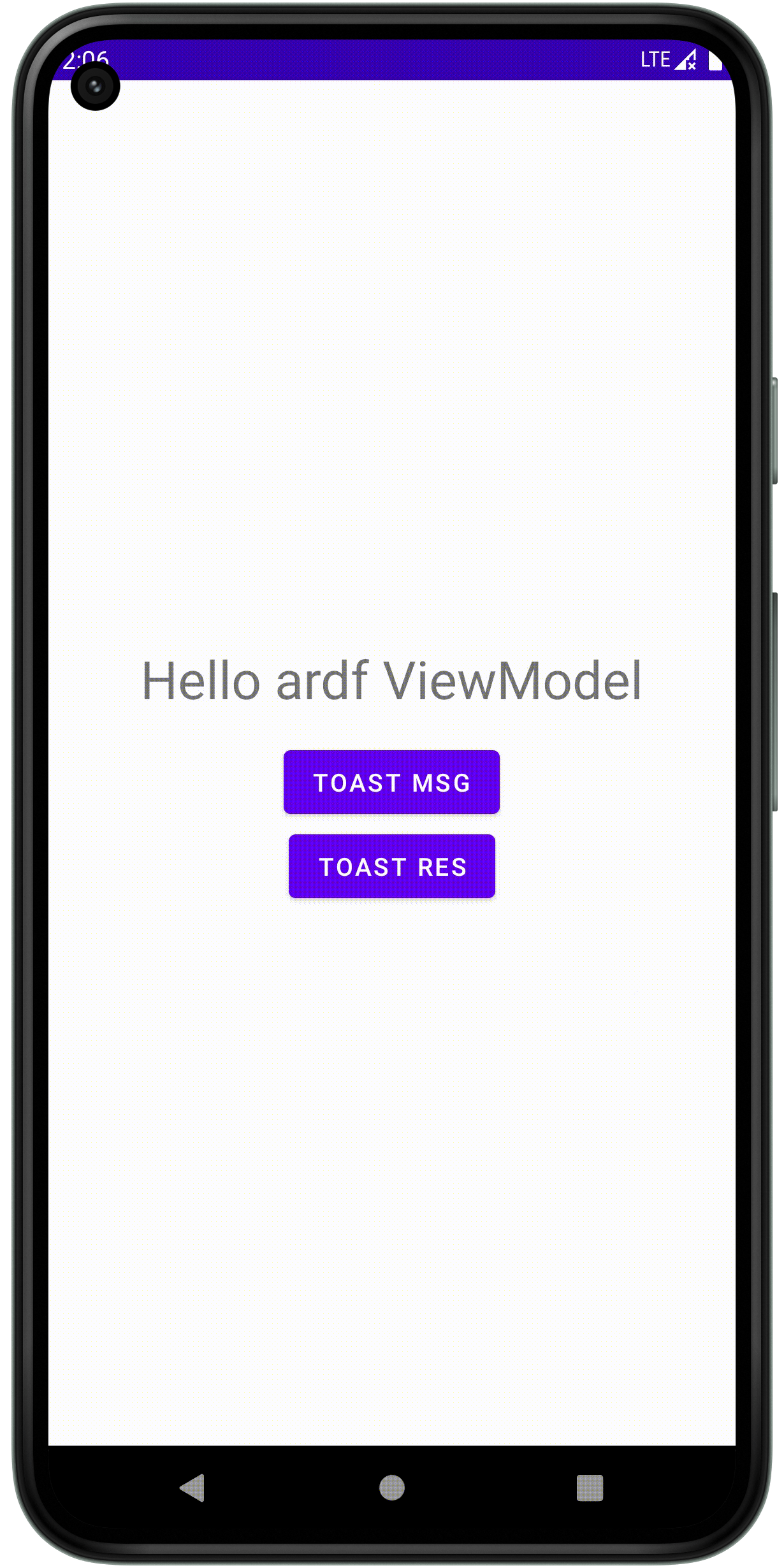 ardf提供了事件的处理机制,可以将事件传递到 Activity / Fragment 中,然后在 Activity / Fragment 中进行涉及 Context 的处理,并且 ardf提供了两种事件的默认处理:toast(弹出 toast 提示)、back(返回上一个页面)。