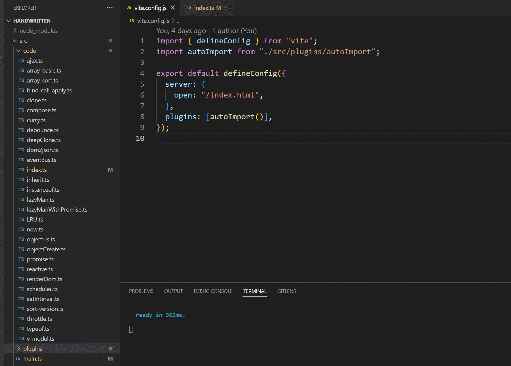 handWritten\src\code\index.ts中统一导入对应的文件 - 在