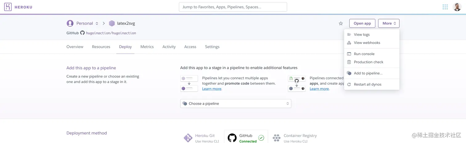 Heroku与Node.js生态系统和GitHub都有集成,使我们的部署工作变得简单。Heroku还为我们的代码提供了持续的集成和部署,而不需要我们在GitHub的行动中写任何东西,这使我们的工作变得更加容易。配置完成后,我们需要将代码推送到GitHub,使其在Heroku中上线。