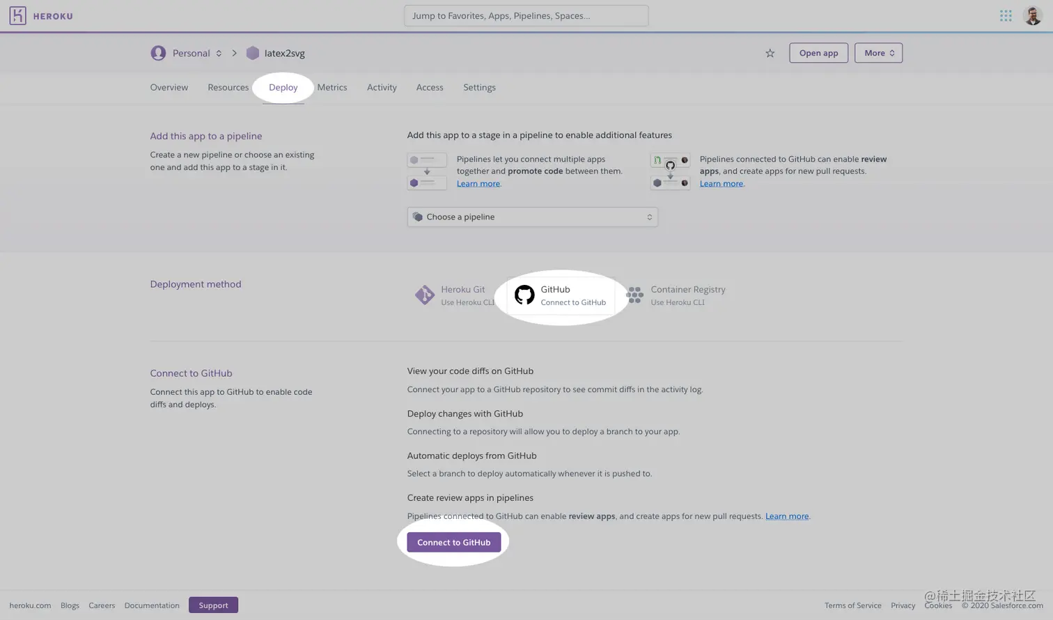 - 现在我们可以决定集成的模式。直接与GitHub集成是最简单的,我们的用例就采用这种方式。要连接到GitHub,你可以进入部署>部署方式>GitHub,然后点击连接到GitHub