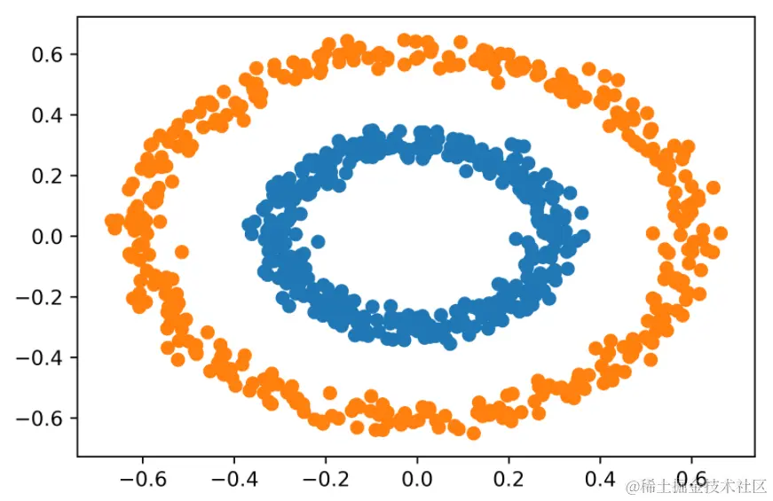 DBSCAN是一种对由弯曲和密集形状组成的数据进行聚类的优势算法。另外,与K-means不同,该算法在执行前不需要对聚类数量进行近似计算。此外,DBSCAN可以过滤位于空间稀疏区域的随机离群值。例如,如果我们添加了一个位于环形边界之外的离群点,DBSCAN会给它分配一个-1的聚类ID,这个负值表示这个离群点不能与数据集的其他部分聚类。