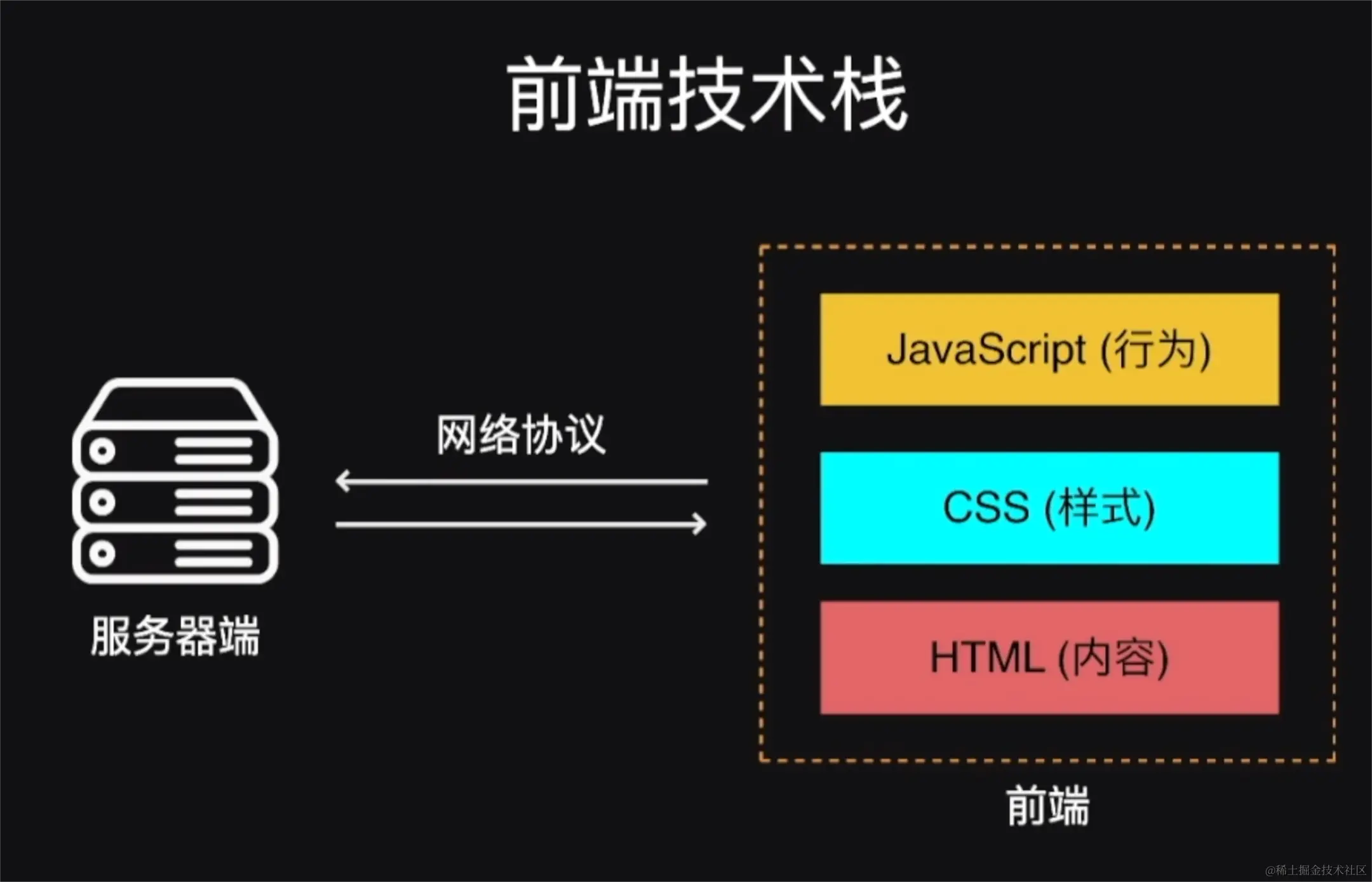 • HTML,CSS,JavaScript都是运行在浏览器中,浏览器通过HTTP协议和服务器进行通信,将前端的代码通过HTTP协议从服务器拿到,再将其渲染成我们看见的页面。