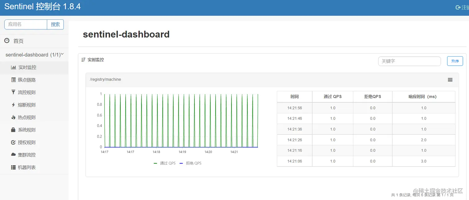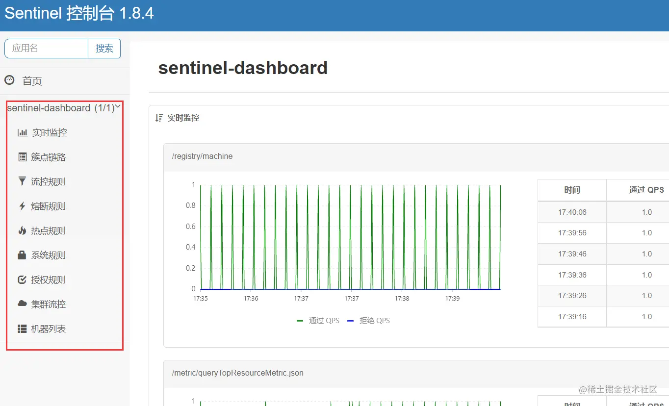 可以看到,控制台已经将 sentinel-dashboard 控制台项目本身监控起来了。