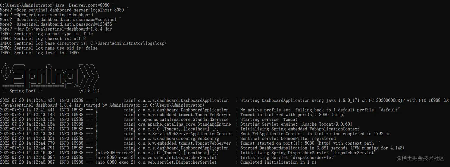 -Dsentinel.dashboard.auth.username=sentinel ^