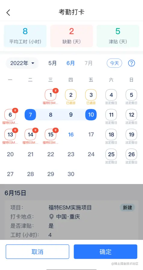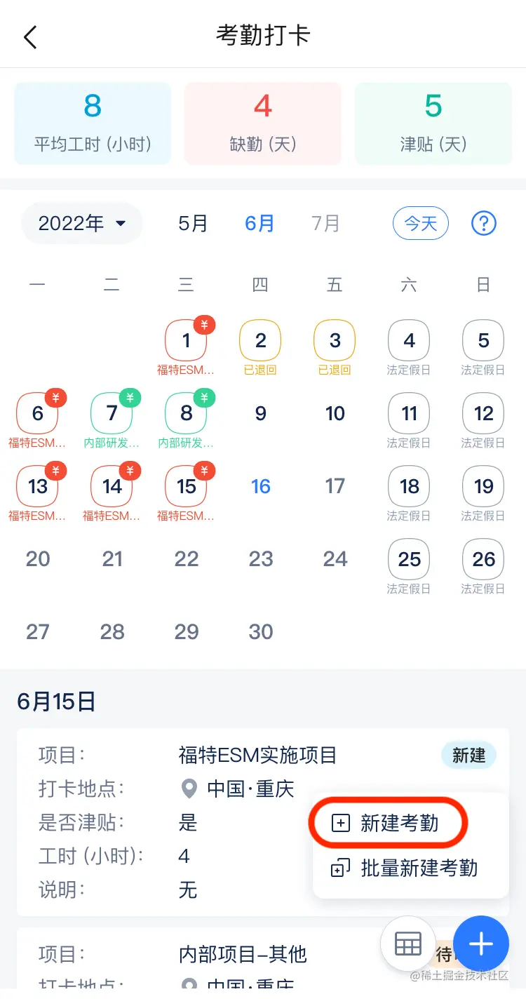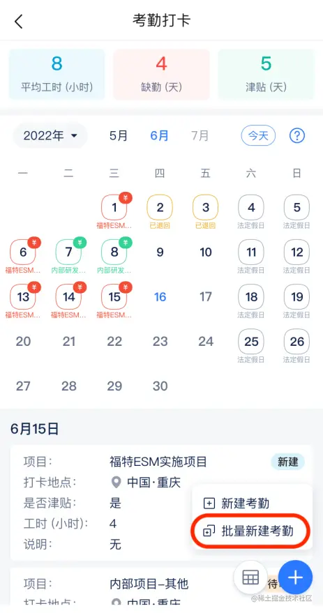 每天填报多条考勤记录