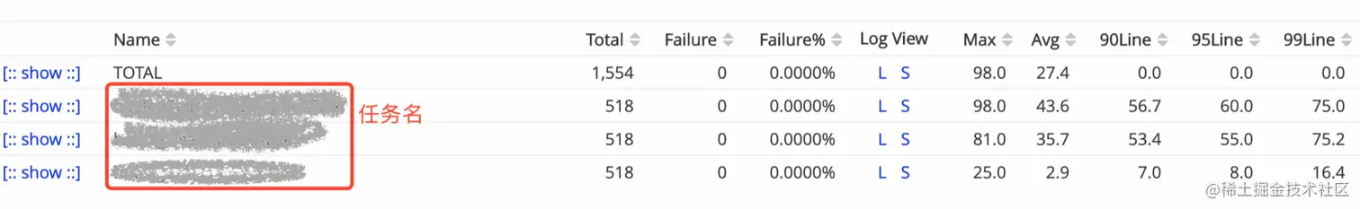 在传统的线程池应用场景中,线程池中的任务执行情况对于用户来说是透明的。比如在一个具体的业务场景中,业务开发申请了一个线程池同时用于执行两种任务,一个是发消息任务、一个是发短信任务,这两类任务实际执行的频率和时长对于用户来说没有一个直观的感受,很可能这两类任务不适合共享一个线程池,但是由于用户无法感知,因此也无从优化。动态化线程池内部实现了任务级别的埋点,且允许为不同的业务任务指定具有业务含义的名称,线程池内部基于这个名称做Transaction打点,基于这个功能,用户可以看到线程池内部任务级别的执行情况,且区分业务,任务监控示意图如下图所示: