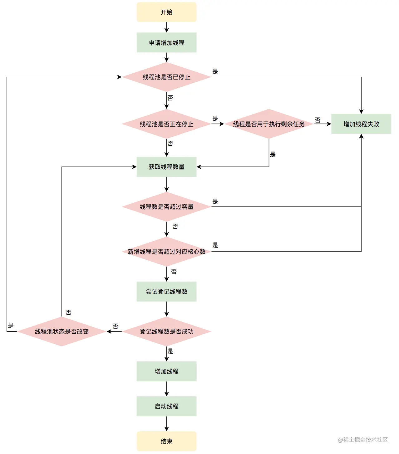 //如果添加工作线程失败,我们重新获取 线程池状态 + 线程池线程数量