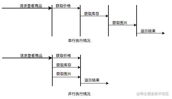 分析:从用户体验角度看,这个结果响应的越快越好,如果一个页面半天都刷不出,用户可能就放弃查看这个商品了。而面向用户的功能聚合通常非常复杂,伴随着调用与调用之间的级联、多级级联等情况,业务开发同学往往会选择使用线程池这种简单的方式,将调用封装成任务并行的执行,缩短总体响应时间。另外,使用线程池也是有考量的,这种场景最重要的就是获取最大的响应速度去满足用户,所以应该不设置队列去缓冲并发任务,调高corePoolSize和maxPoolSize去尽可能创造多的线程快速执行任务。