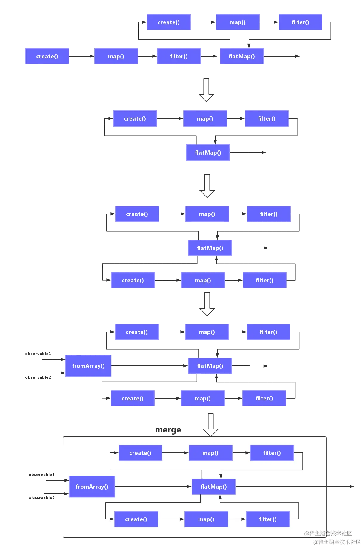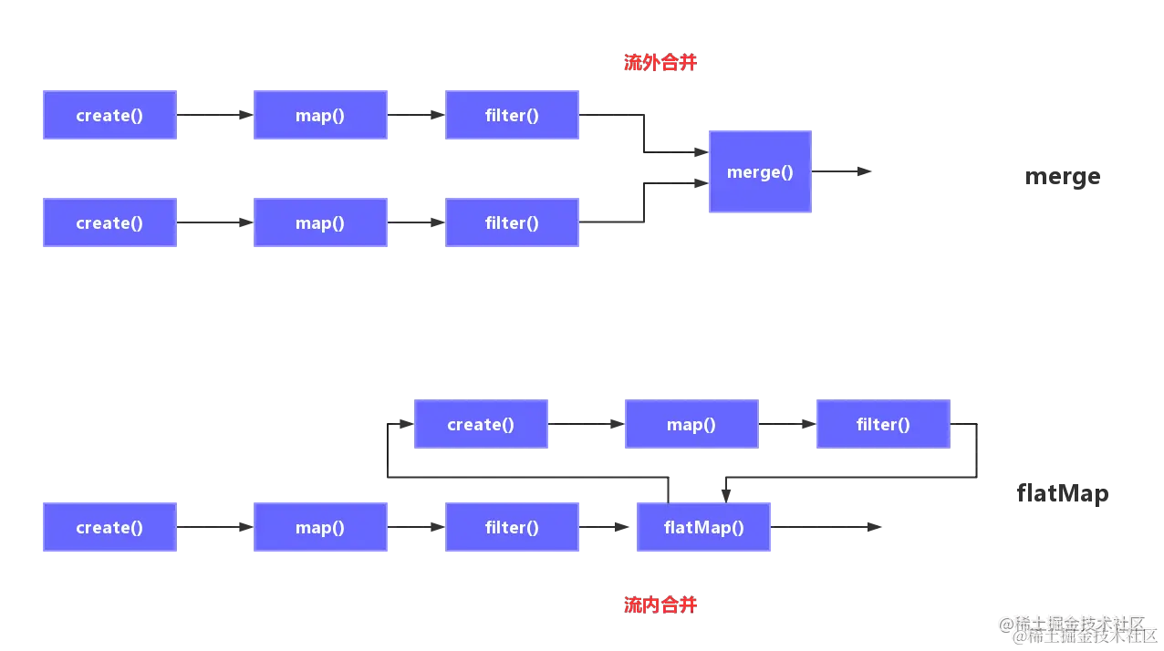 ReactiveX 认为,Rx中重要的是数据流(或者叫事件流也行),所有的代码执行逻辑本质上都是围绕着一系列的数据做获取,传递,转换,合并等各种操作。