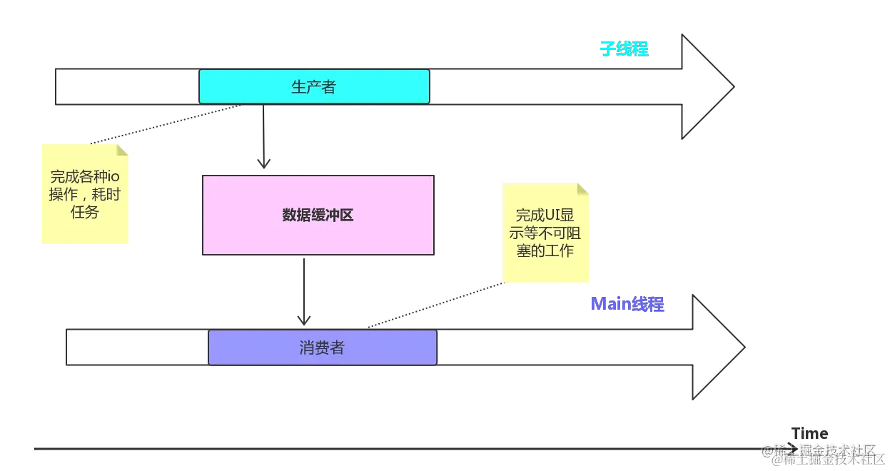 在我们的编程场景里,UI 就是最常见的消费者,而生产者则比如本地数据库,网络等等。