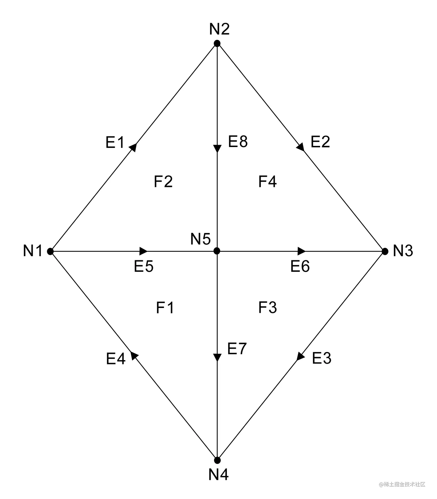 因为GIS拓扑学是图论的产物,它认同一套不同的术语。就所有意图和目的而言,你可以把几何学中的一个点看作是拓扑学中的一个节点,把线绳看作是一条边,把多边形看作是一个面。总的来说,节点、边和面是拓扑学的基元,用来代替几何学。
