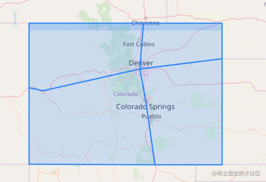 整个科罗拉多州是一个大面孔,是一个完美的矩形多边形几何体。