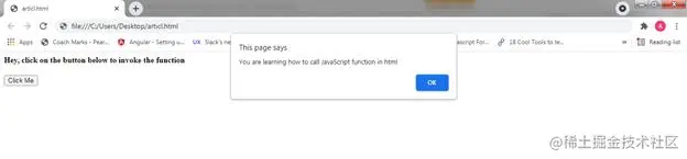 alert("You are learning how to call JavaScript function in html");