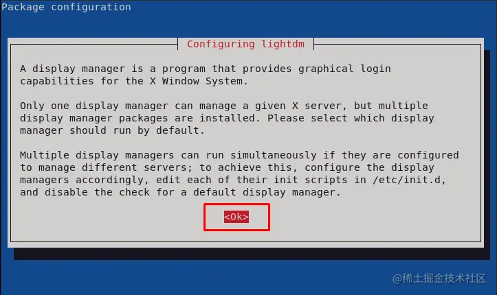 安装将需要几分钟时间,这取决于网络速度;此外,在安装过程中会显示一个提示窗口,其中包含两个著名的显示管理器 "GNOME显示管理器(gdm)"和 "Light显示管理器 (LightDM)"。你可以安装它们中的任何一个;然而,建议使用 "LightDM",因为与 "gdm"相比,它应该是轻便和快速的。