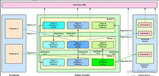 Kafka 0.8 以后,提供了 HA 机制,就是 replica(复制品) 副本机制。每个 partition 的数据都会同步到其它机器上,形成自己的多个 replica 副本。所有 replica 会选举一个 leader 出来,那么生产和消费都跟这个 leader 打交道,然后其他 replica 就是 follower。写的时候,leader 会负责把数据同步到所有 follower 上去,读的时候就直接读 leader 上的数据即可。只能读写 leader?很简单,要是你可以随意读写每个 follower,那么就要 care 数据一致性的问题,系统复杂度太高,很容易出问题。Kafka 会均匀地将一个 partition 的所有 replica 分布在不同的机器上,这样才可以提高容错性。