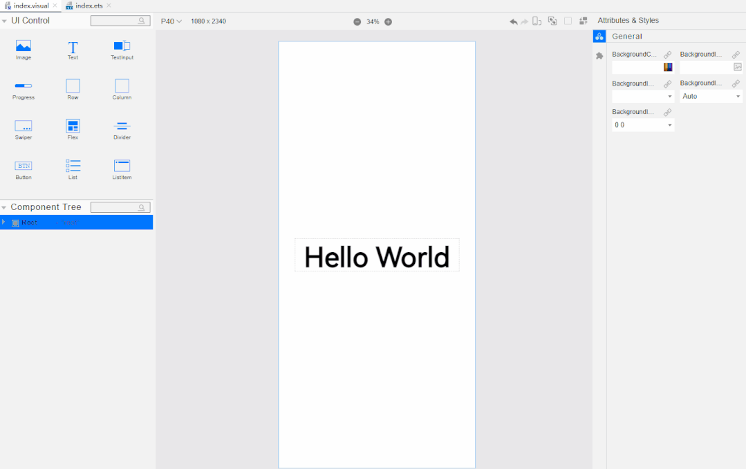 新版本增加了eTS低代码开发功能,支持组件自由拖拽排版以及数据绑定。创建工程时选择开启Super Visual,打开使用低代码开发功能。在工程目录结构下打开“.visual”文件,即可进行UI界面的可视化布局设计与开发。