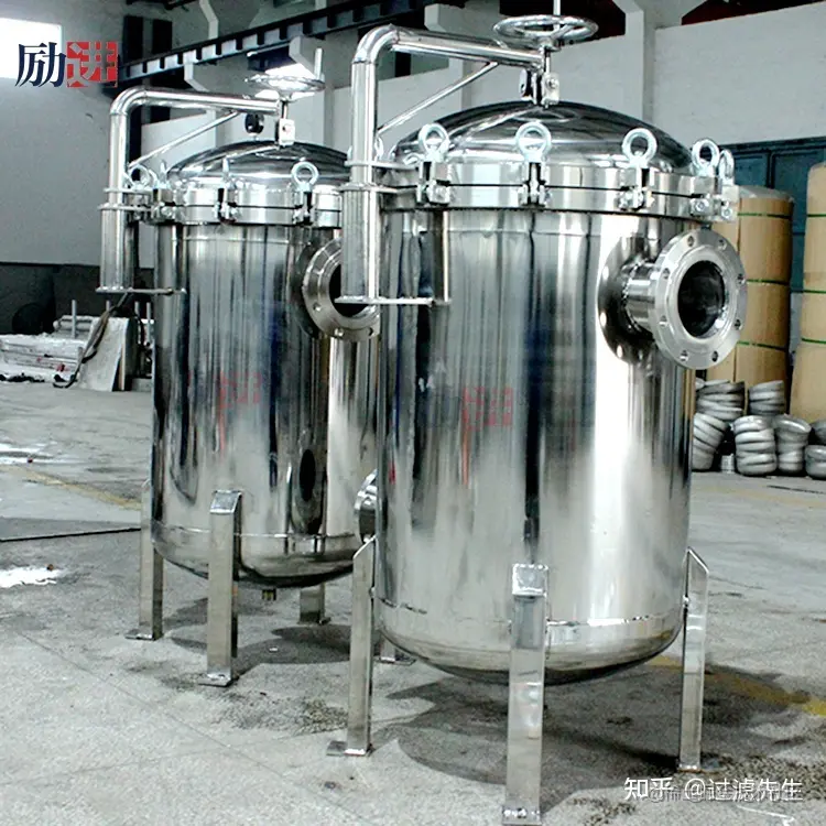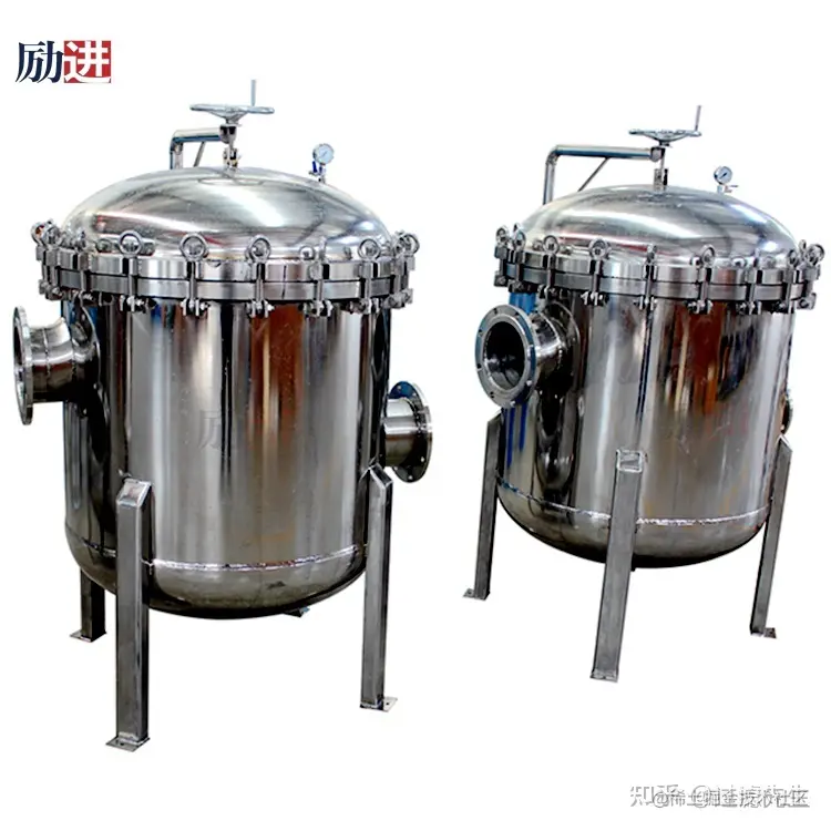 袋式过滤器是通过滤袋,在压力的作用下,使原液通过滤袋,被滤袋截留下来的污染物滞留在滤袋内滤渣留在滤袋里,滤液沿着金属支承网篮壁流出,从而起到过滤的目的。