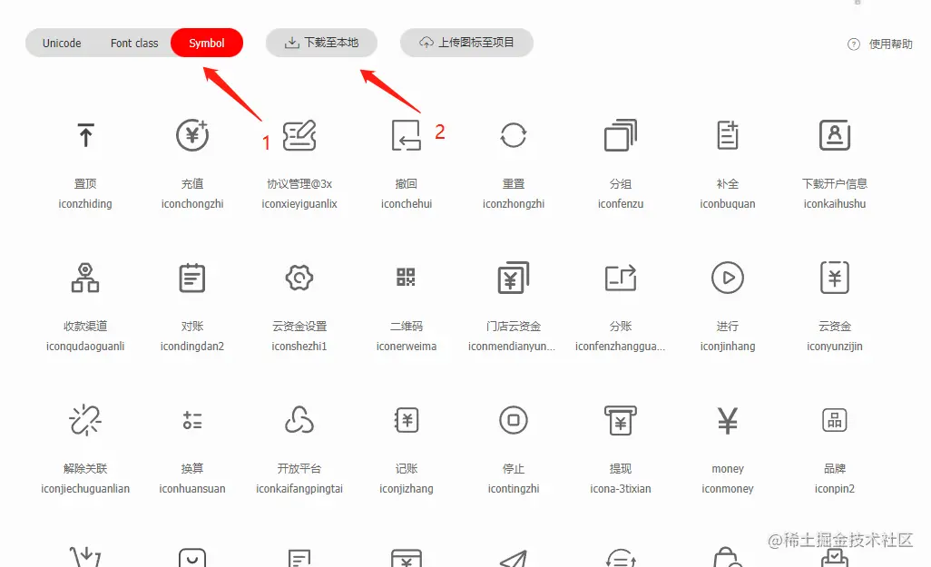然后把文件按步骤下载到本地 图一。把iconfont.js放到本地资源文件夹,我的存放路径是import '@/assets/font/iconfont.js'; 具体请看图二