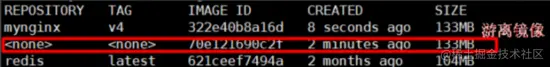 REPOSITORY(名) TAG (标签) IMAGE ID(镜像 id) CREATED(镜像的创建时间) SIZE