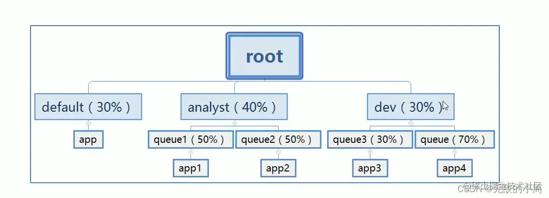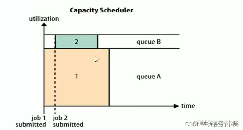 允许多个组织共享整个集群资源,每个组织可以获得集群的一部分计算能力,通过为每个组织分配专门的队列,然后再为每个队列分配一定的集群资源,这样整个集群就可以通过设置多个队列的方式给多个组织提供服务了。